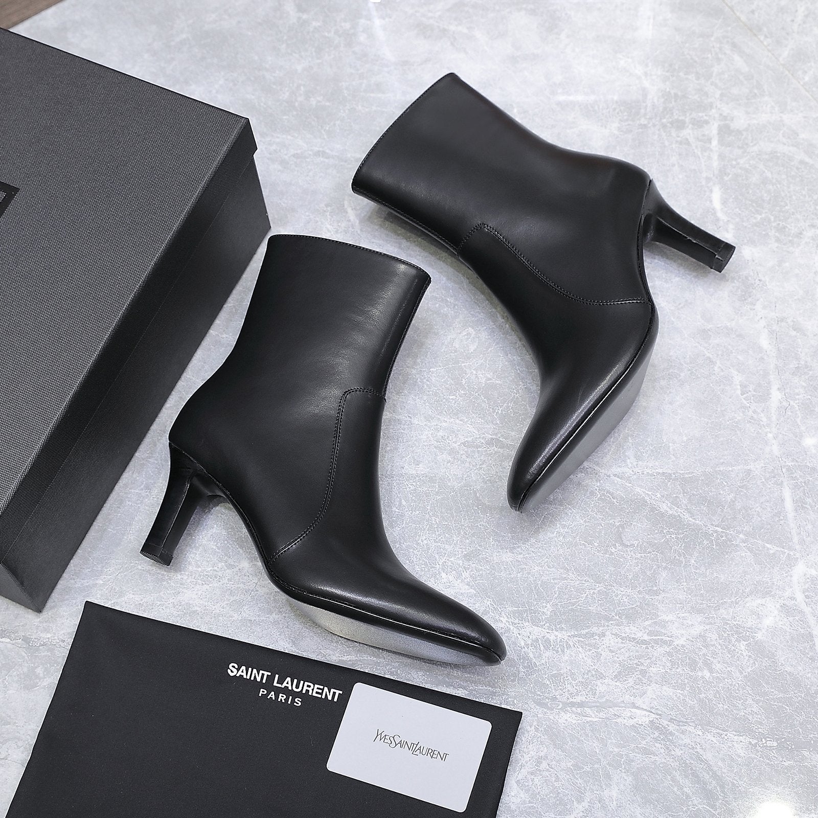 YSL 25S ANKLE BOOTS 70 MM IN BLACK LAMBSKIN