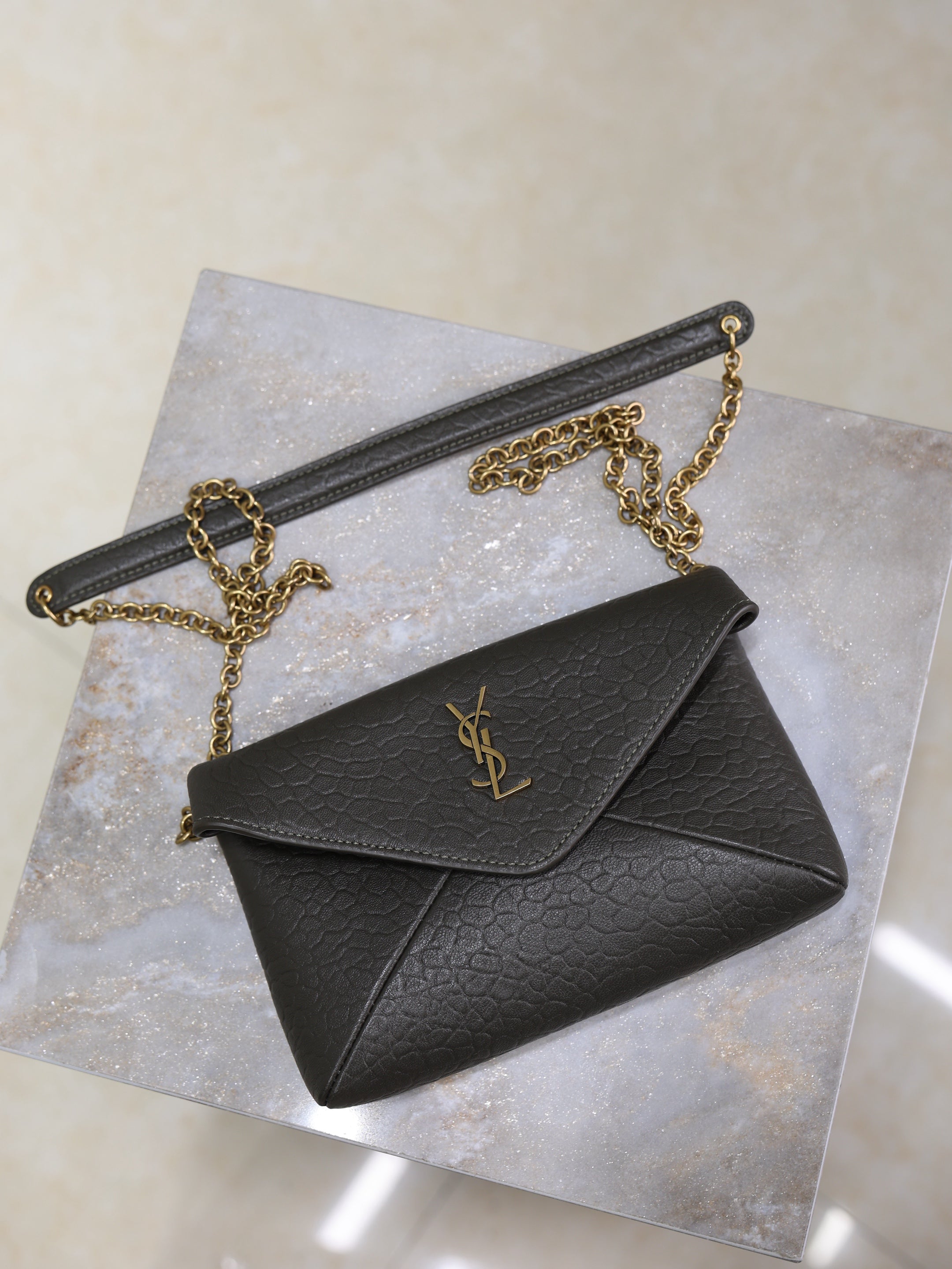 YSL 25S CALYPSO MINI 19 IN CHARCOAL GRAY LAMBSKIN GOLD HARDWARE