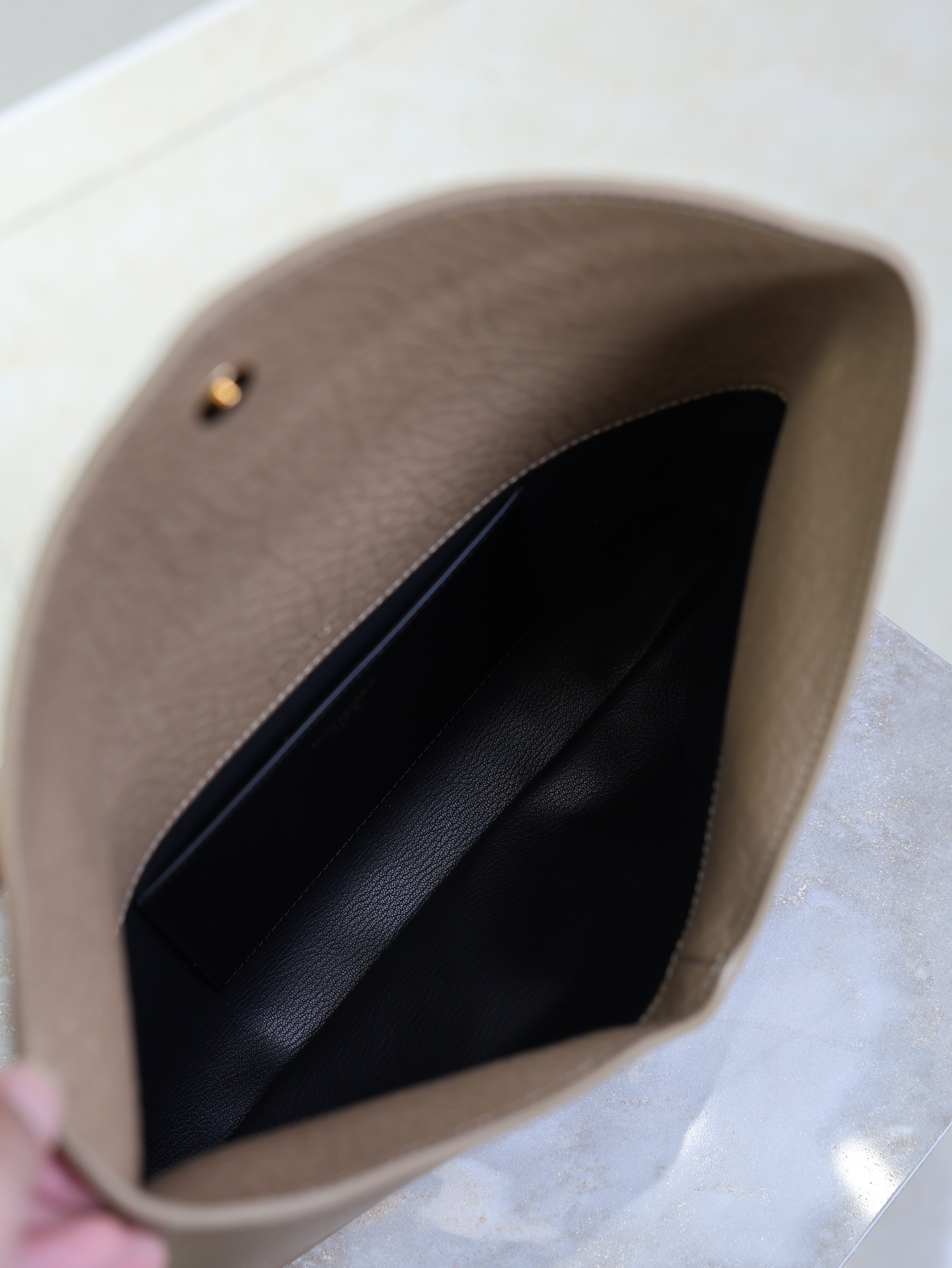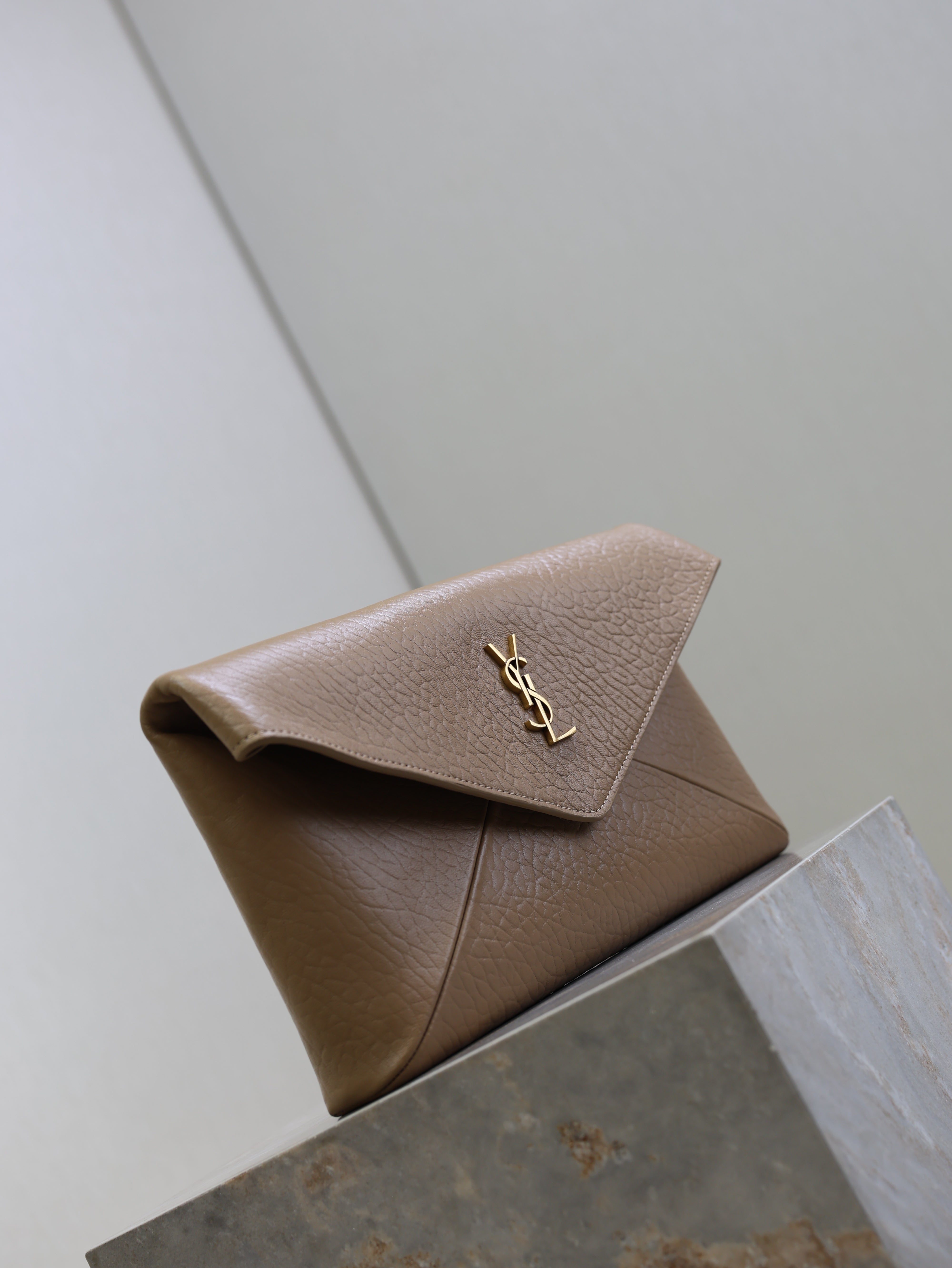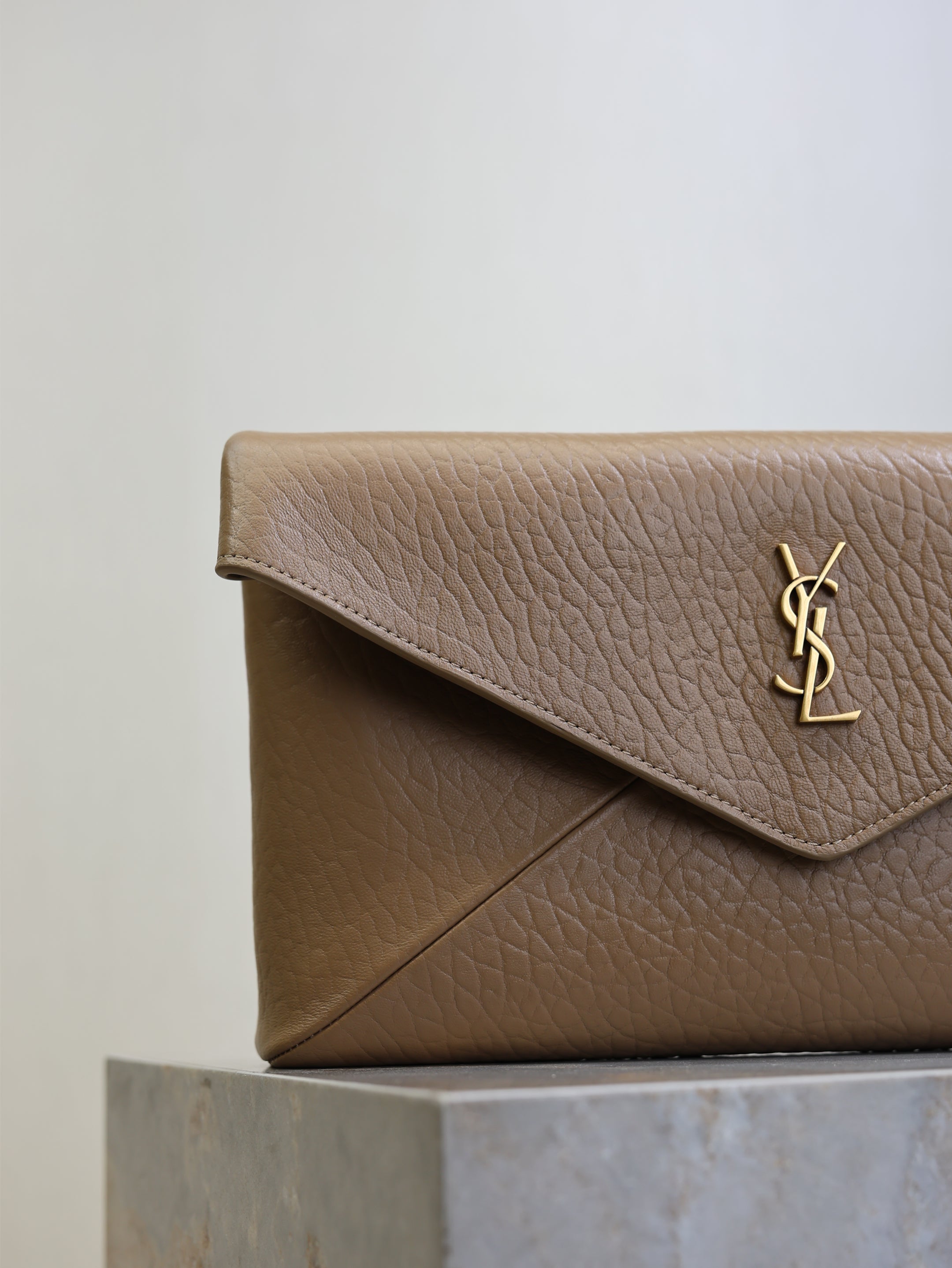 YSL 25S CASSANDRE LARGE ENVELOPE POUCH 29 IN DARK TAUPE CALFSKIN GOLD HARDWARE