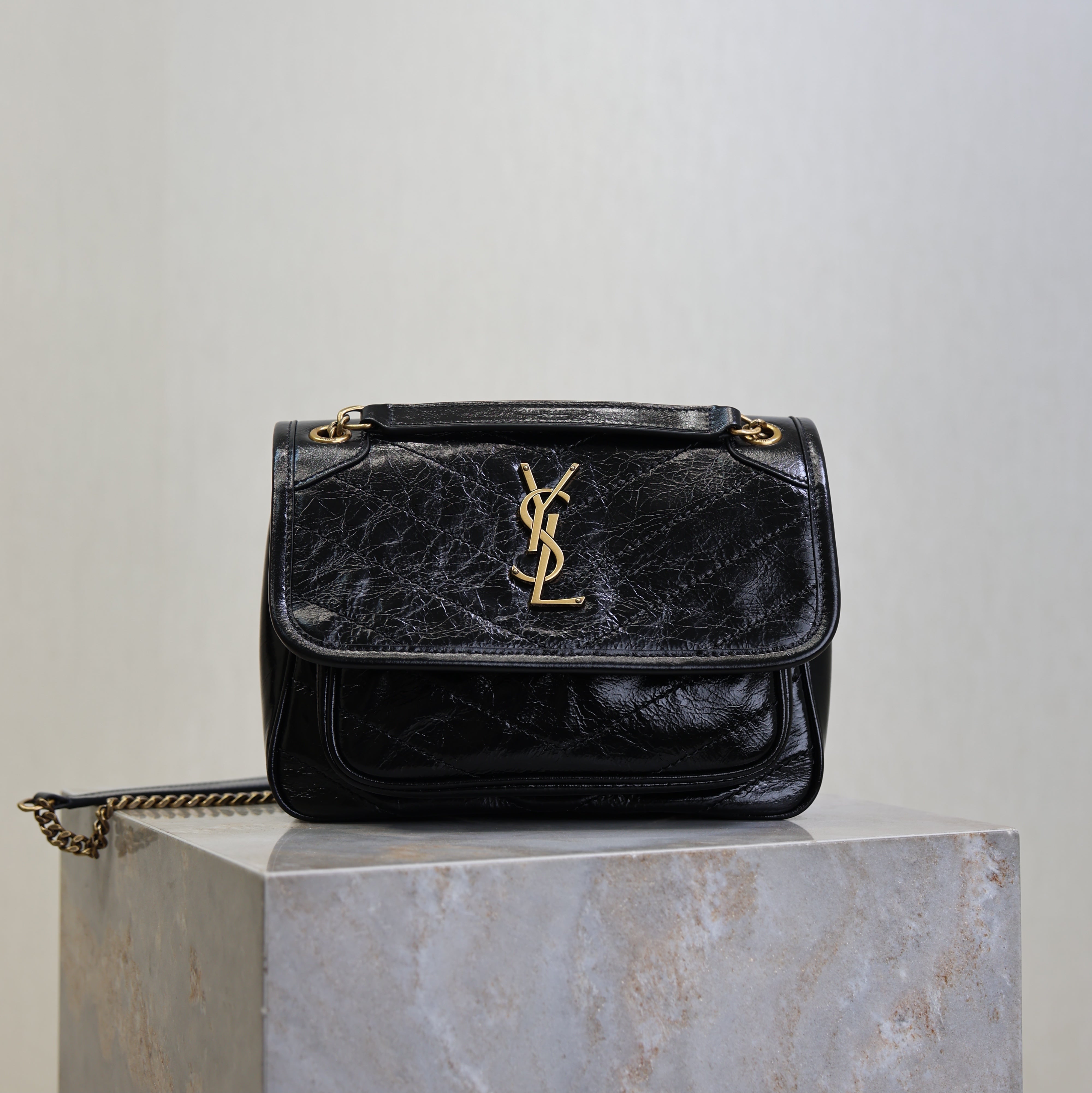YSL 25S NIKI BAG 22 IN BLACK GLOSSY CALFSKIN GOLD HARDWRE