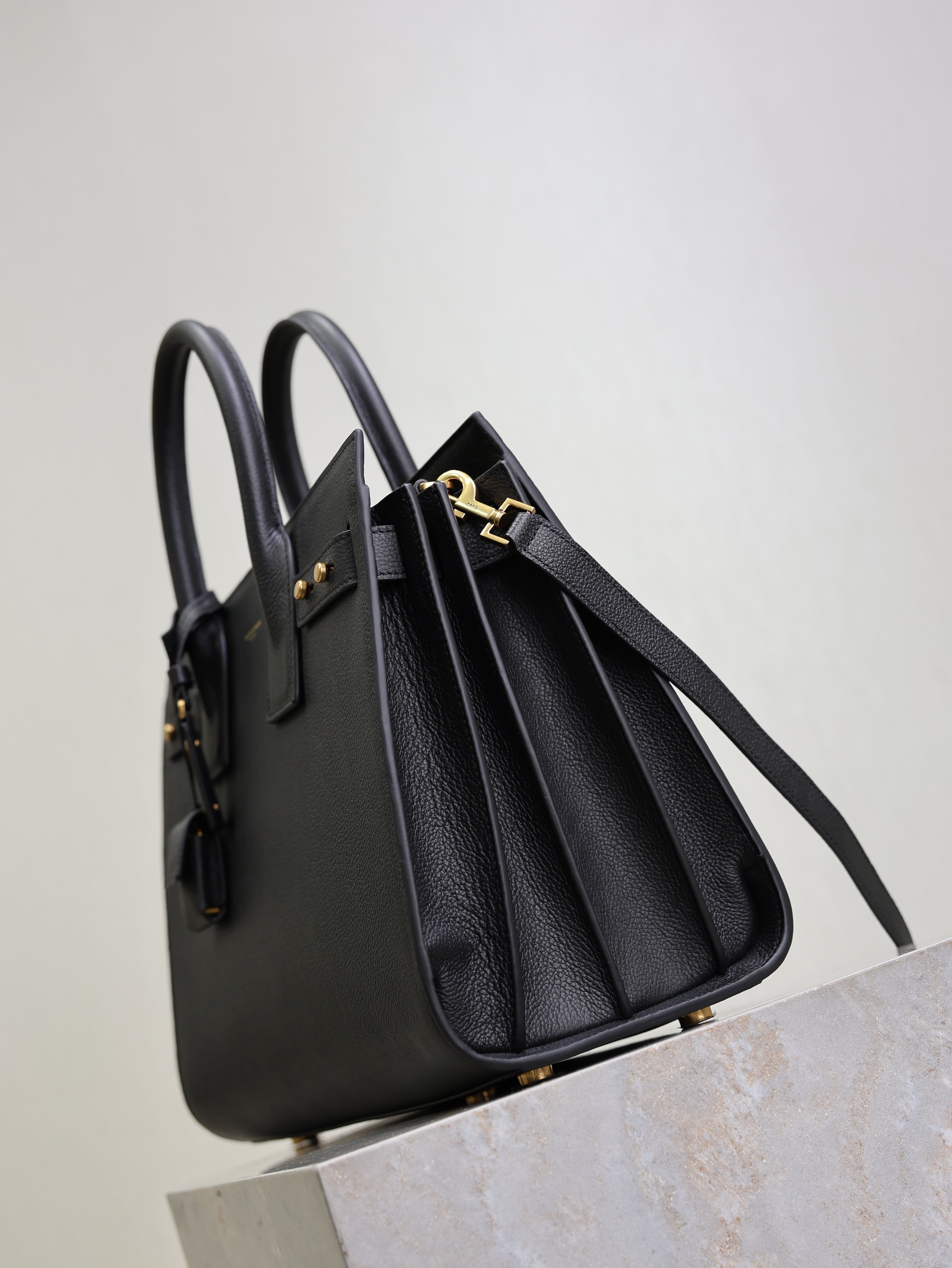 YSL 25S SAC DE JOUR GM 32 IN BLACK SUPPLE GRAINED CALFSKIN GOLD HARDWARE