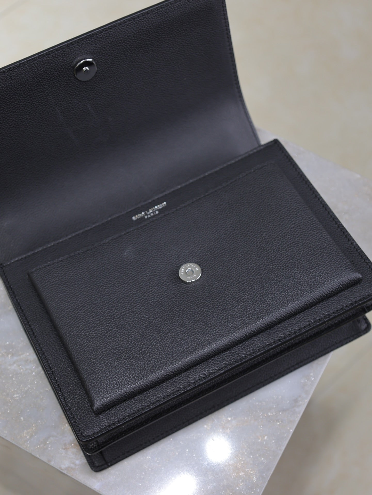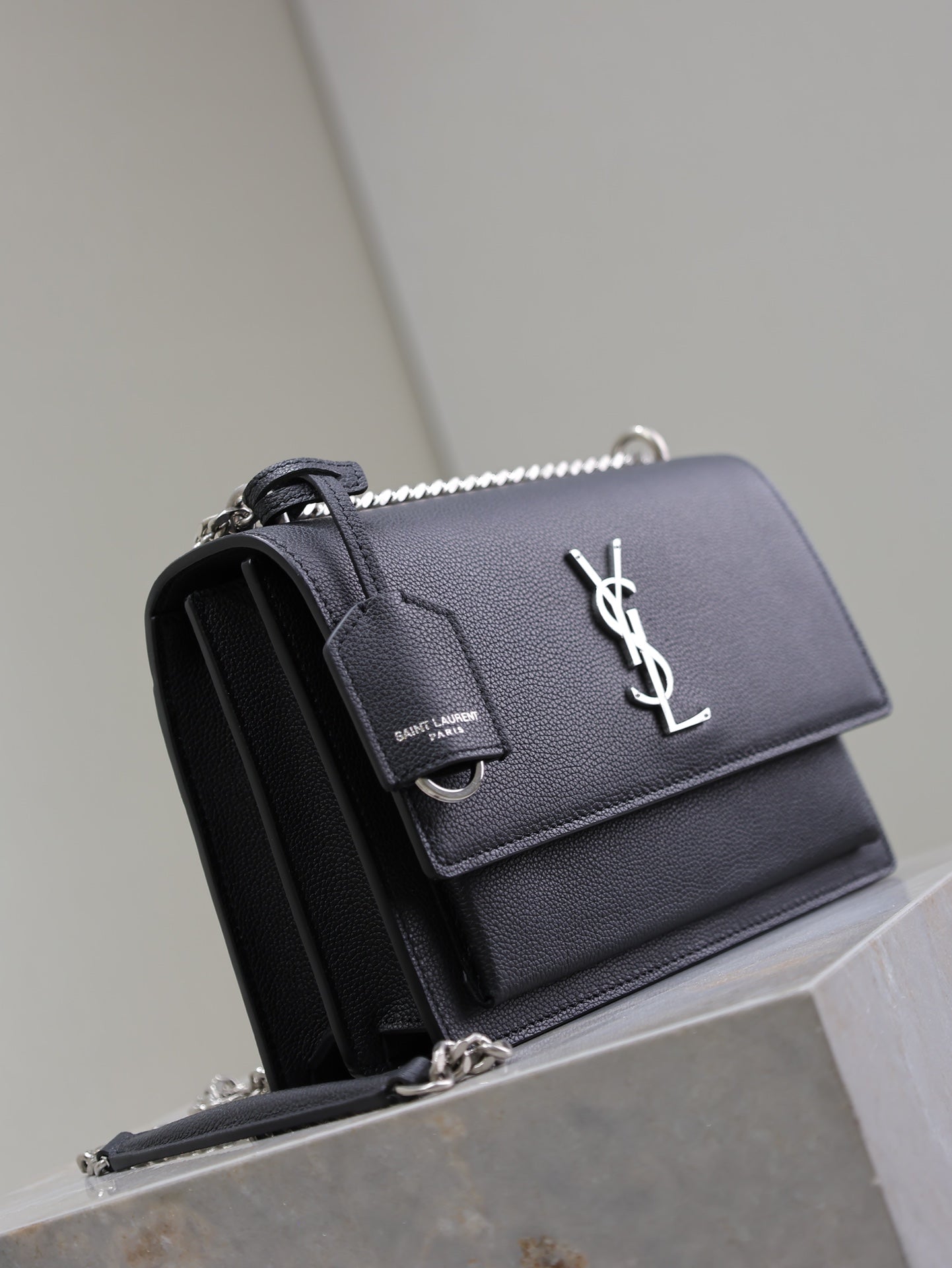 YSL 25S SUNSET MEDIUM 22 IN BLACK GRAINED CALFSKIN SILVER HARDWRE