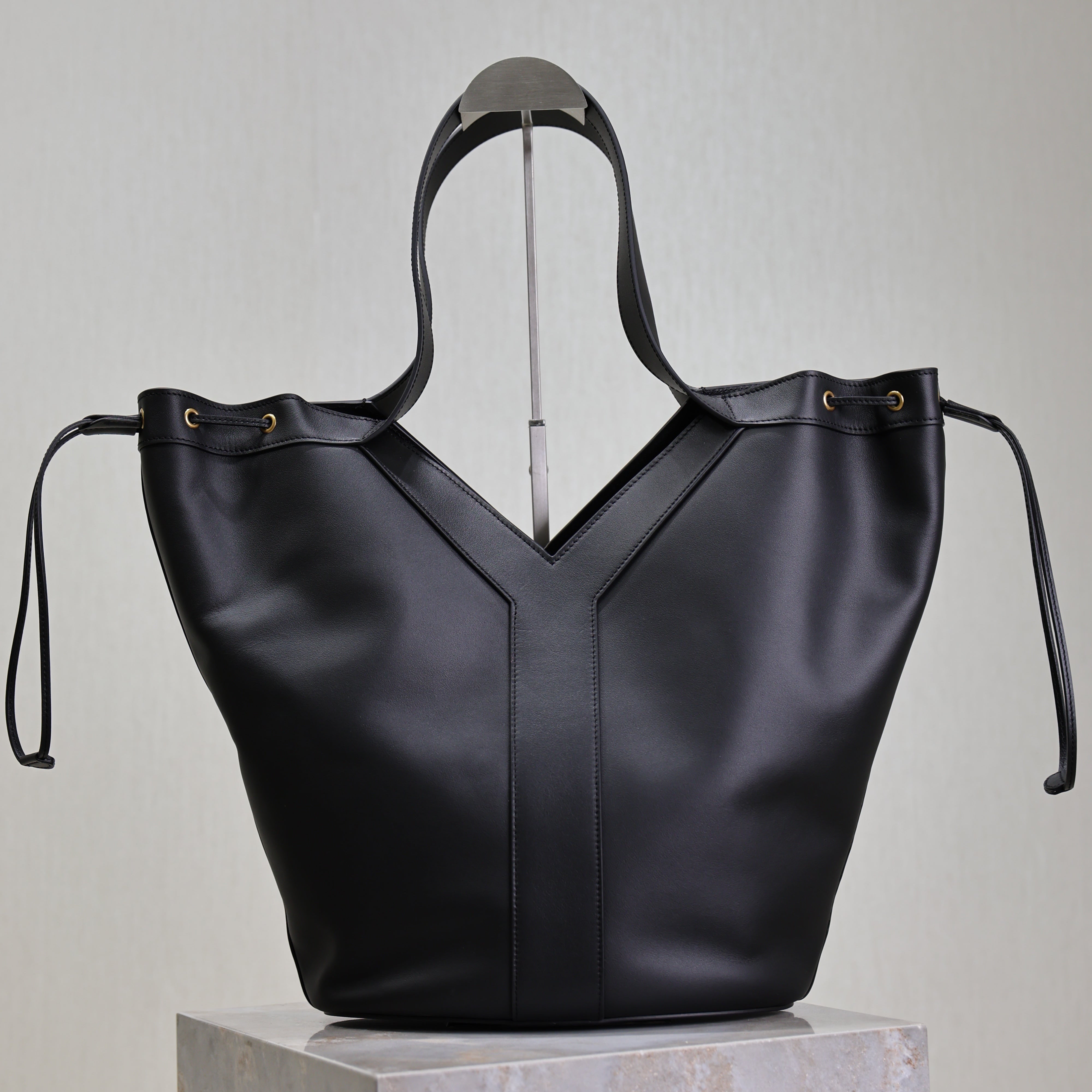 YSL 25S Y LARGE HOBO 50 IN BLACK CALFSKIN GOLD HARDWRE